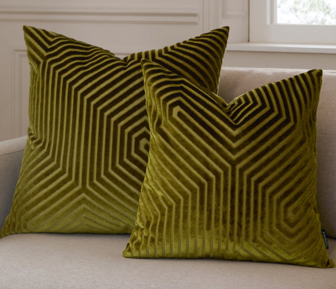 Cut Velvet Cushion Olive