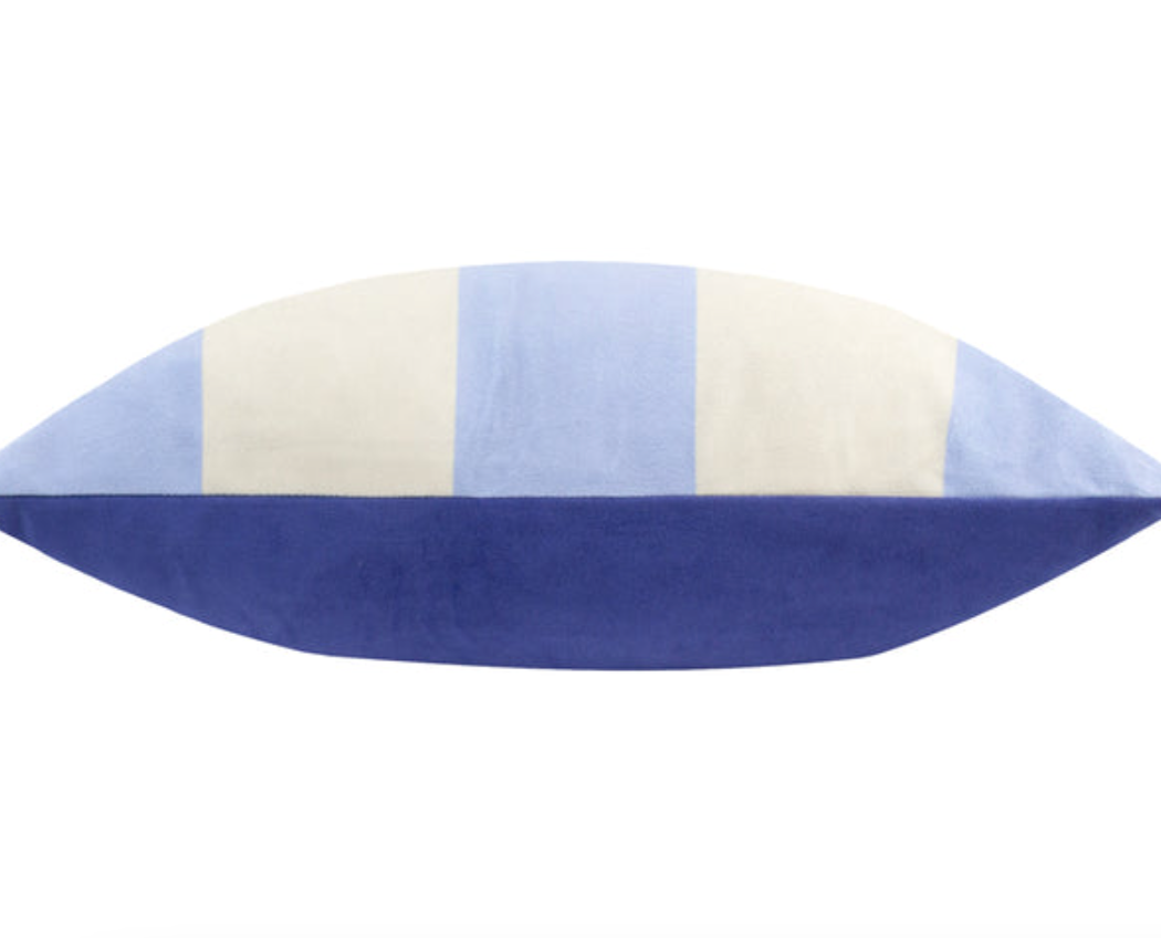 Striped Velvet Cushion Blue