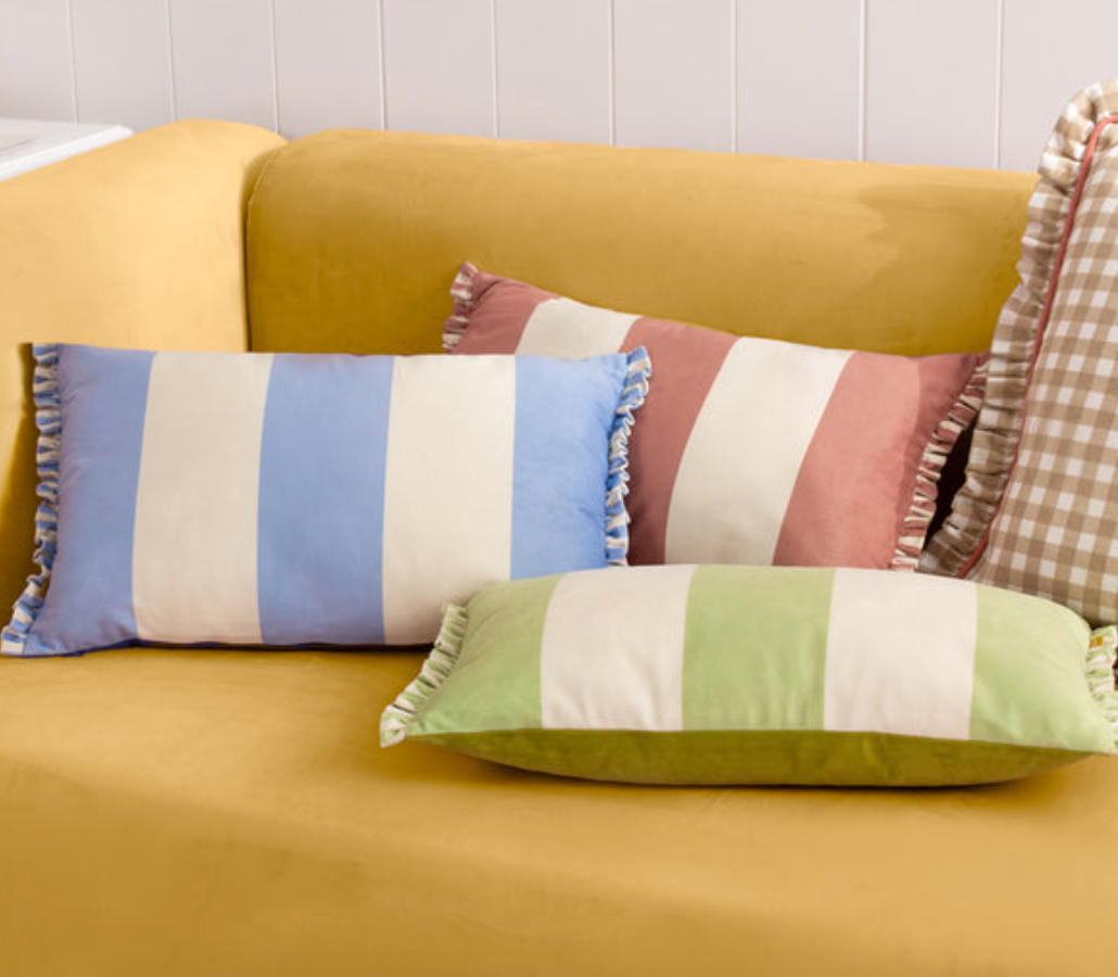 Gorgeous soft velvet cushion with stripes. A real treat for the sofa. Handcrafted in the UK with premium materials, this rectangular cushion brings warmth and texture to any room. Perfect for gifting or personal indulgence.