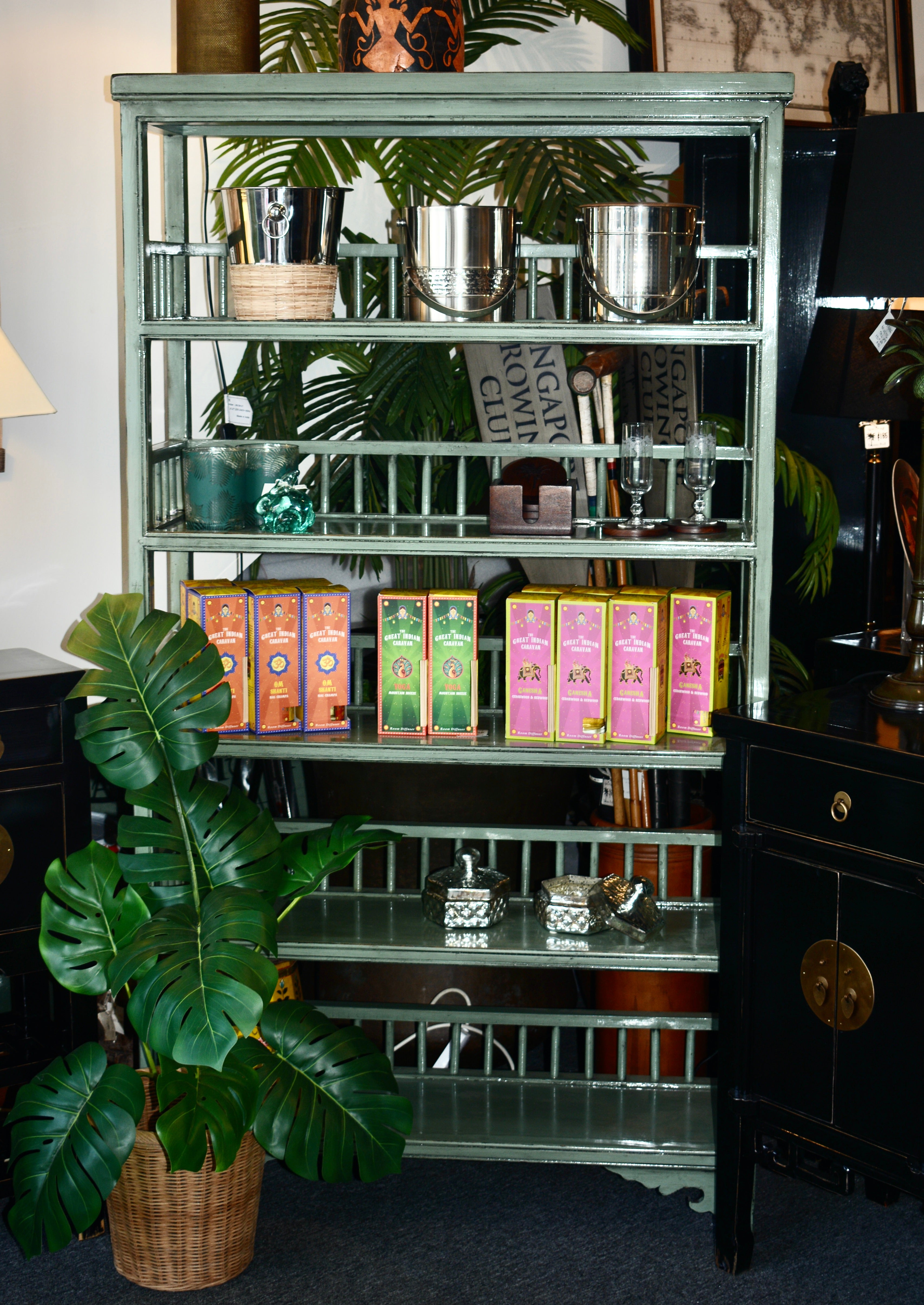 This striking elmwood cabinet showcases a soft sage green finish or a white painted finish that commands attention in any interior space. Featuring nine generously proportioned drawers, it combines practical storage capacity with authentic Chinese craftsmanship. The carefully applied painted surface highlights the natural grain of the elmwood, creating visual depth and character. An ideal statement piece for those seeking both functional storage and distinctive design elements.