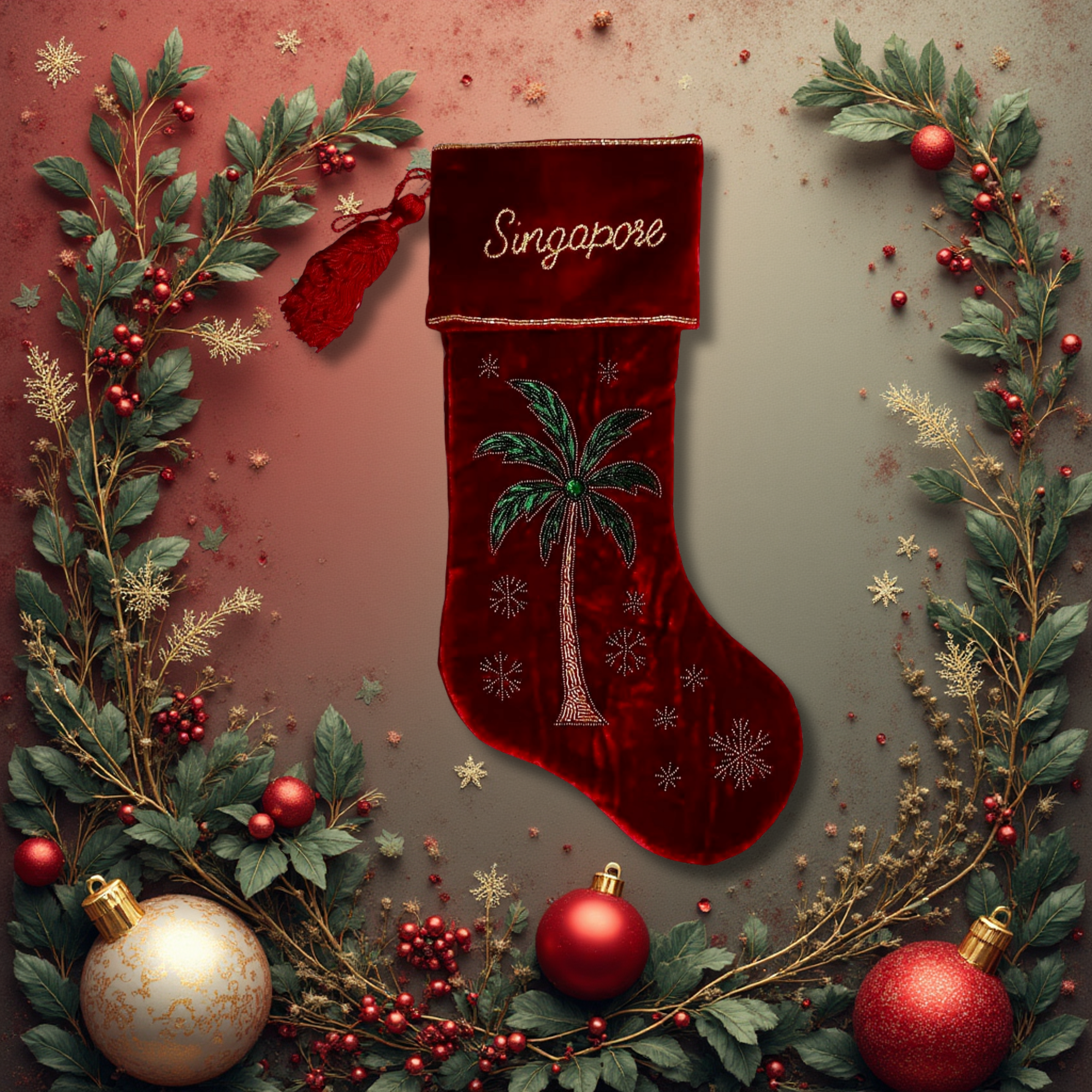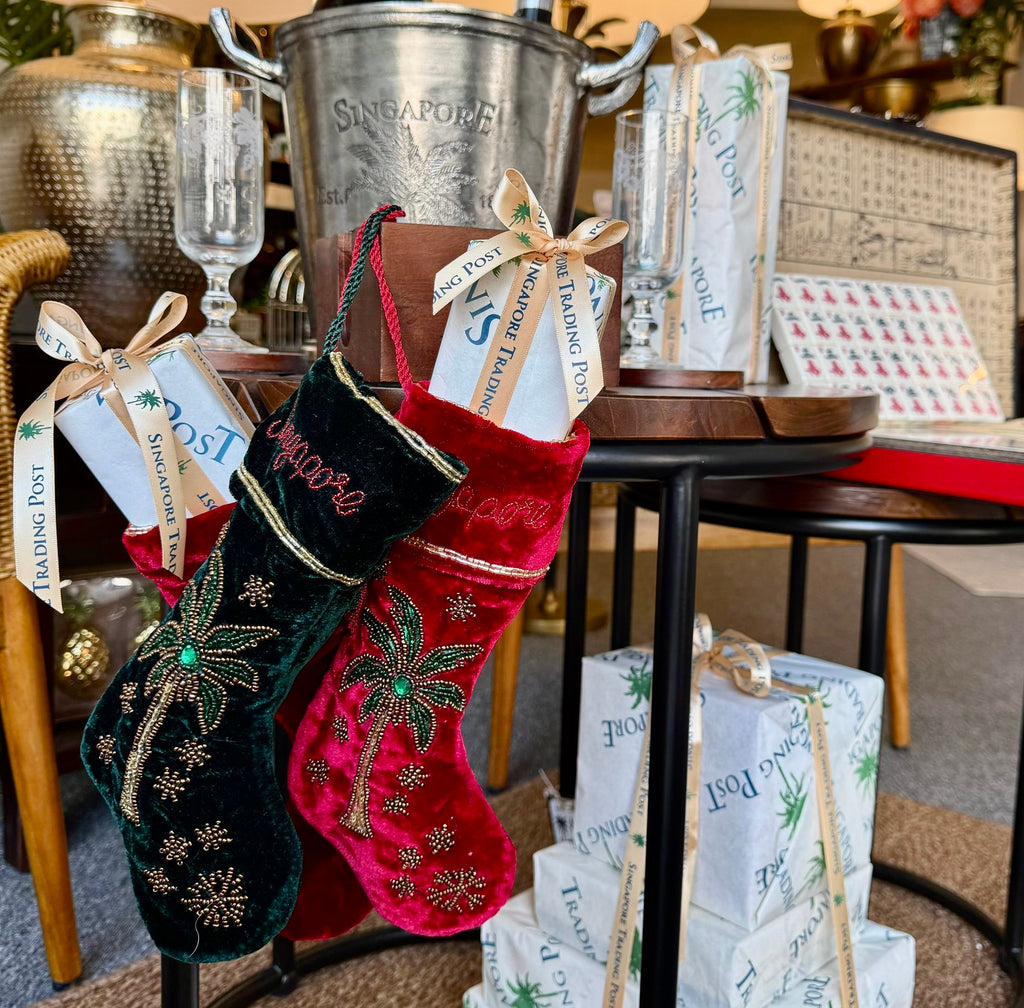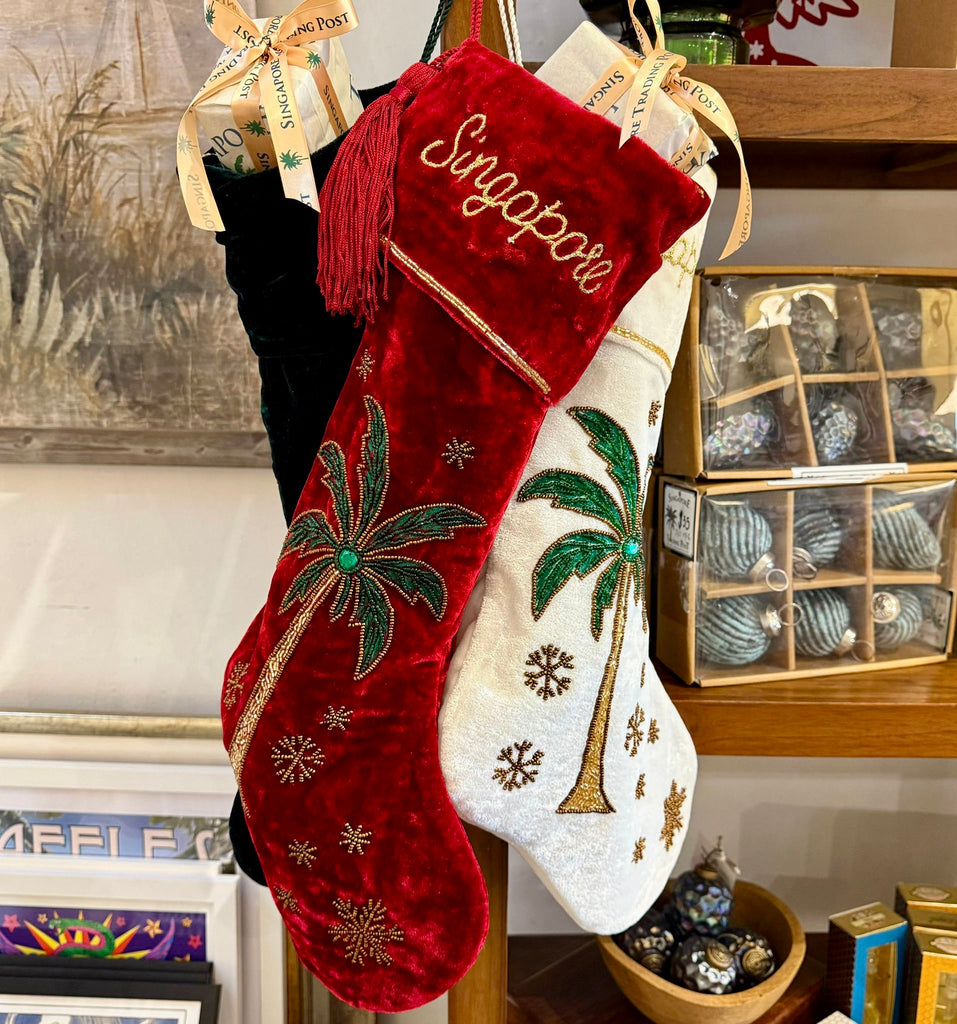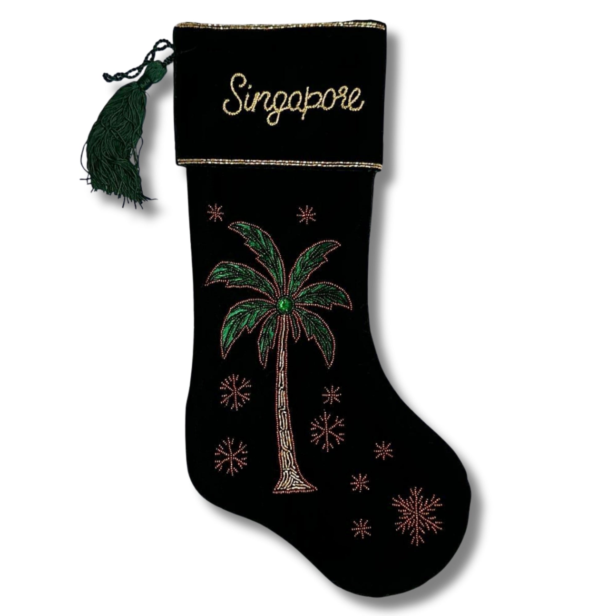 This exquisite Christmas large size stocking features detailed hand beading and is available in two sizes and three colours: green, red, and white. Crafted beadwork by skilled artisans in India exclusively for Singapore Trading Post, it serves as a unique holiday keepsake. A beauty to hang on your mantelpiece.