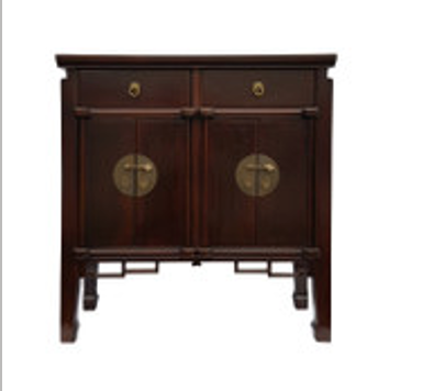 This striking Chinese buffet showcases timeless elegance through its refined black finish and authentic elmwood construction. Featuring traditional brass hardware and intricate wood lattice work, it combines functional storage with understated sophistication. The piece includes practical cupboard doors and drawers, making it an ideal addition for those seeking a statement furniture piece. A new style for our furniture collection.