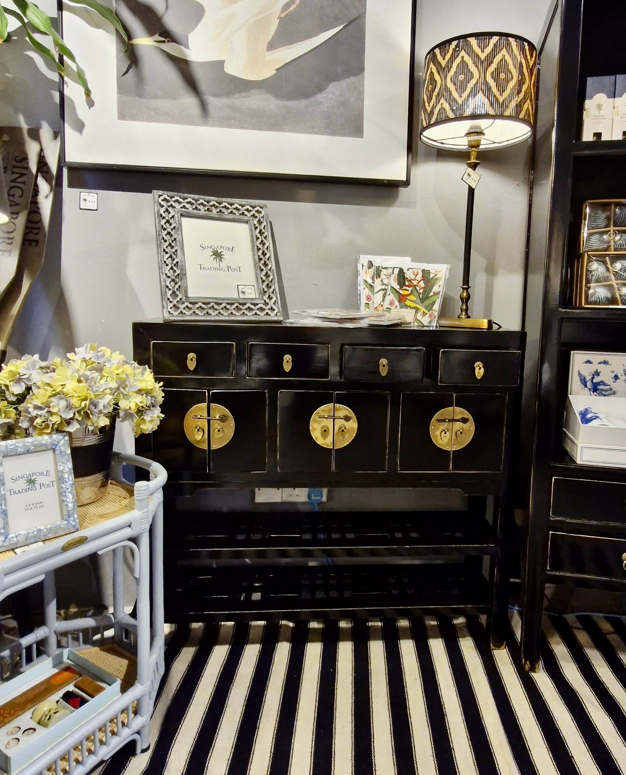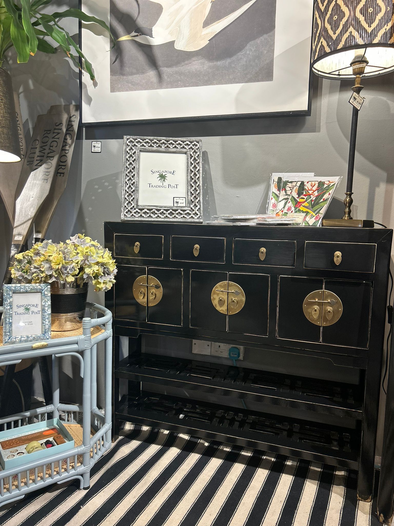 Elevate your workspace with this refined side table, a striking addition to any interior. Featuring four delicate drawers and three open compartments for organized storage, it combines functionality with understated elegance. The lattice-detailed lower shelves provide both visual interest and practical display space, making it an ideal accent piece for the discerning home.