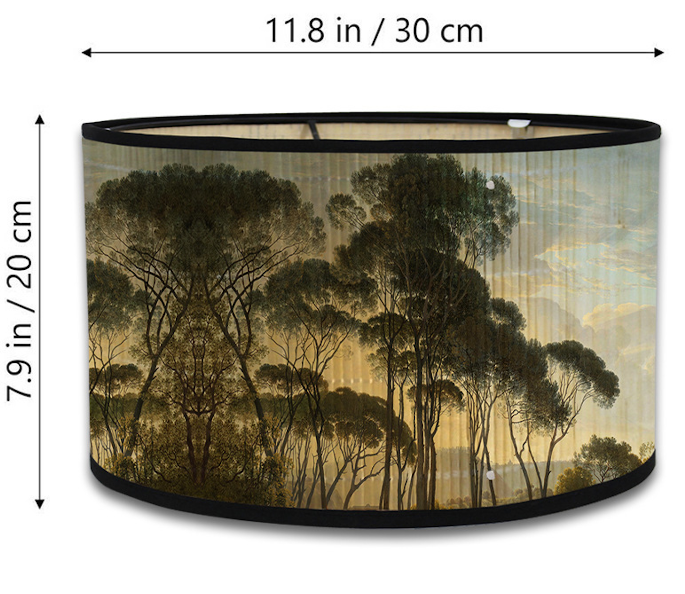 Transform your space with this expertly crafted lampshade, featuring an evocative forest landscape rendered on sustainable bamboo. The cylindrical design showcases a serene woodland scene that captures the essence of nature's tranquility.