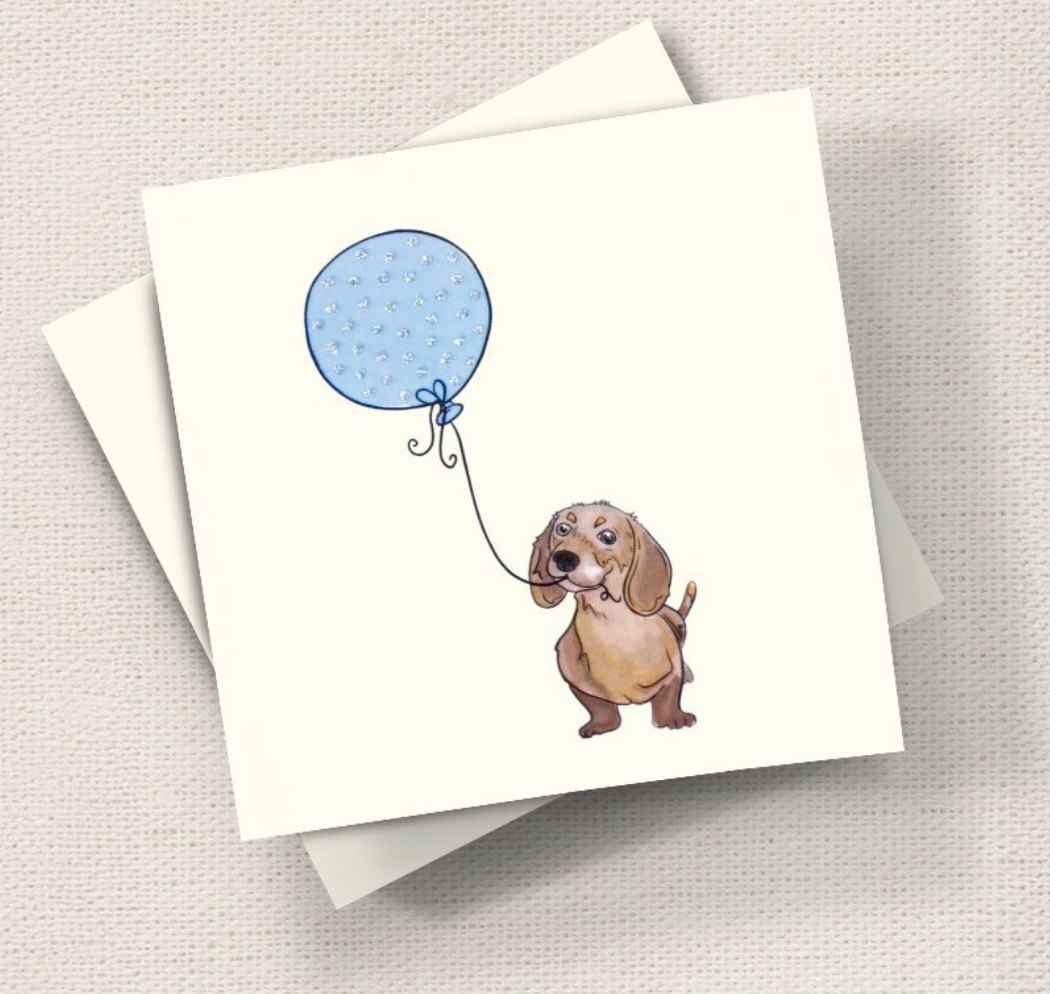 A charming gift card featuring a glittery dachshund design, crafted with eco-friendly glitter. Perfect for gifting to dog lovers and design enthusiasts alike. Imported from the UK, this beautifully made card adds a touch of sparkle to any present.